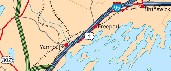![]() Detail view of EPS Vector Map of Maine - the land fill color is switched on. The EPS Vector map for Maine has 22 layers which may be individually modified or removed. Select the Vector only EPS map of Maine option to download this style map. |