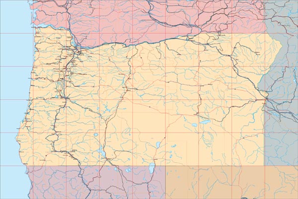 ![]() Detail view of EPS Vector Map of Oregon - the land fill color is switched on. The EPS Vector map for Oregon has 23 layers which may be individually modified or removed. Select the Vector only EPS map of Oregon option to download this style map. |