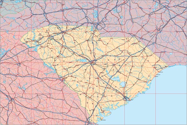 ![]() Detail view of EPS Vector Map of South Carolina - the land fill color is switched on. The EPS Vector map for South Carolina has 22 layers which may be individually modified or removed. Select the Vector only EPS map of South Carolina option to download this style map. |